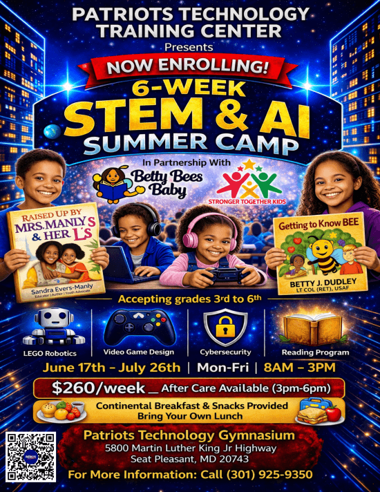 Home / Paid Events / Summer Camp 2026 – B/A Care – Weekly Summer Camp 2026 – B/A Care – Weekly$60.00 Patriots Summer Camp 2026 – Before/After Care – Weekly June 17, 2026 8:00 am - July 26, 2026 3:00 pm 8:00 am - 3:00 pm 5800 Martin Luther King Jr. Hwy, Seat Pleasant, MD Summer Camp 2026 - B/A Care - Weekly quantity Add to cart SKU: PTTC-2026-SUMMERCAMP-BA-CARE Categories: Paid Events, Tickets Tags: after care, before care, summer camp Description Reviews (0) Description Patriots Summer Camp 2026 – Before/After Care – Weekly Reviews There are no reviews yet. Be the first to review “Summer Camp 2026 – B/A Care – Weekly” Cancel replyYour rating * Rate… Perfect Good Average Not that bad Very poor Your review *Name * Email * Save my name, email, and website in this browser for the next time I comment.